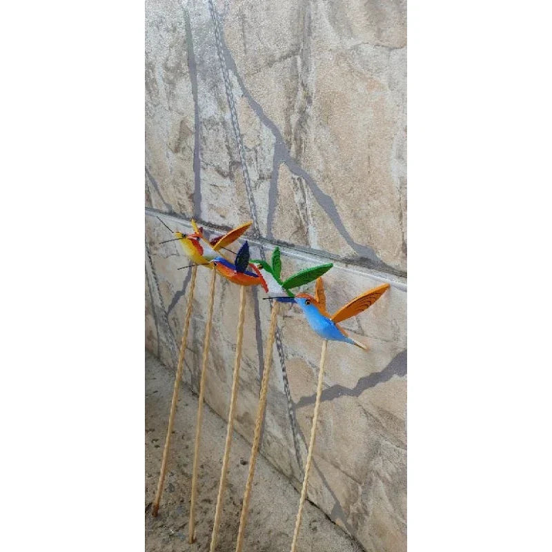 - Conteúdo do kit: 5 beija-flores em hastes para fácil fixação no jardim.