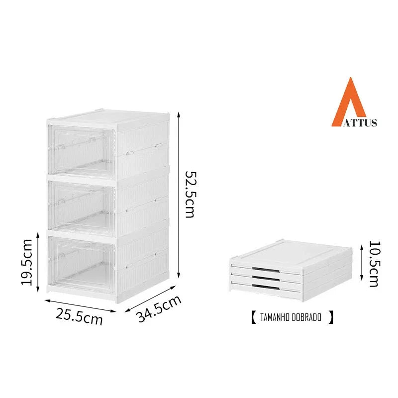 Organize seus sapatos e otimize o espaço com a Caixa de Sapato Dobrável Transparente! Além de prática e empilhável, ela traz sofisticação para o seu dormitório, armário ou closet.